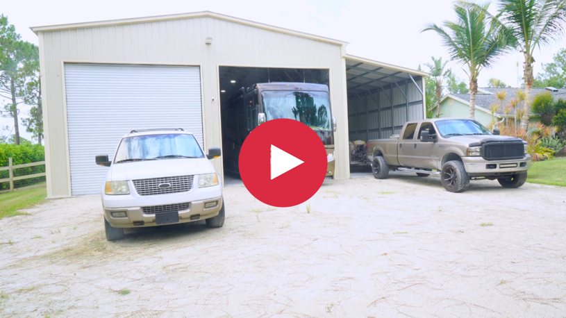 Eversafe’s 34×52 RV Shelter located in Loxahatchee Florida accommodates enough space for multiple large Recreational vehicles, trucks, ATV’s, trailers and watercraft. This RV Storage building has two 14’x14′ roll up doors with a service door in the rear, one service door, and one 12’x53’x13′ Lean-To. Engineered for Loxahatchee Florida, Eversafe garage buildings is the safe and affordable building solution for staying on budget. All of our Loxahatchee RV Storage building prices include free delivery and installation with crews based in Florida that are insured and licensed with the state. Permitting services are available in Loxahatchee Florida. Start with a steel building company you can trust with local offices located in West Palm Beach!